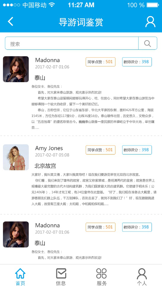 學生提交的導游詞,其他同學都可以相互學習。